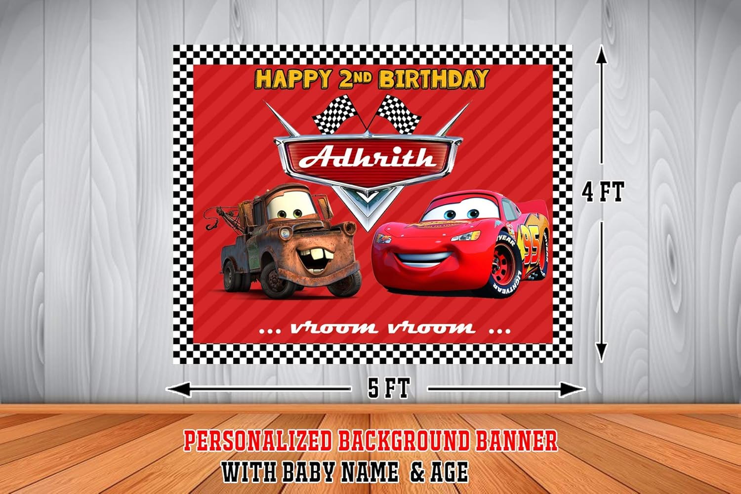 Wow Party Studio Personalized Mcqueen Car Theme Birthday Backdrop Background Banner With Boy Girl Name And Age 4 Height X 5 Ft Width