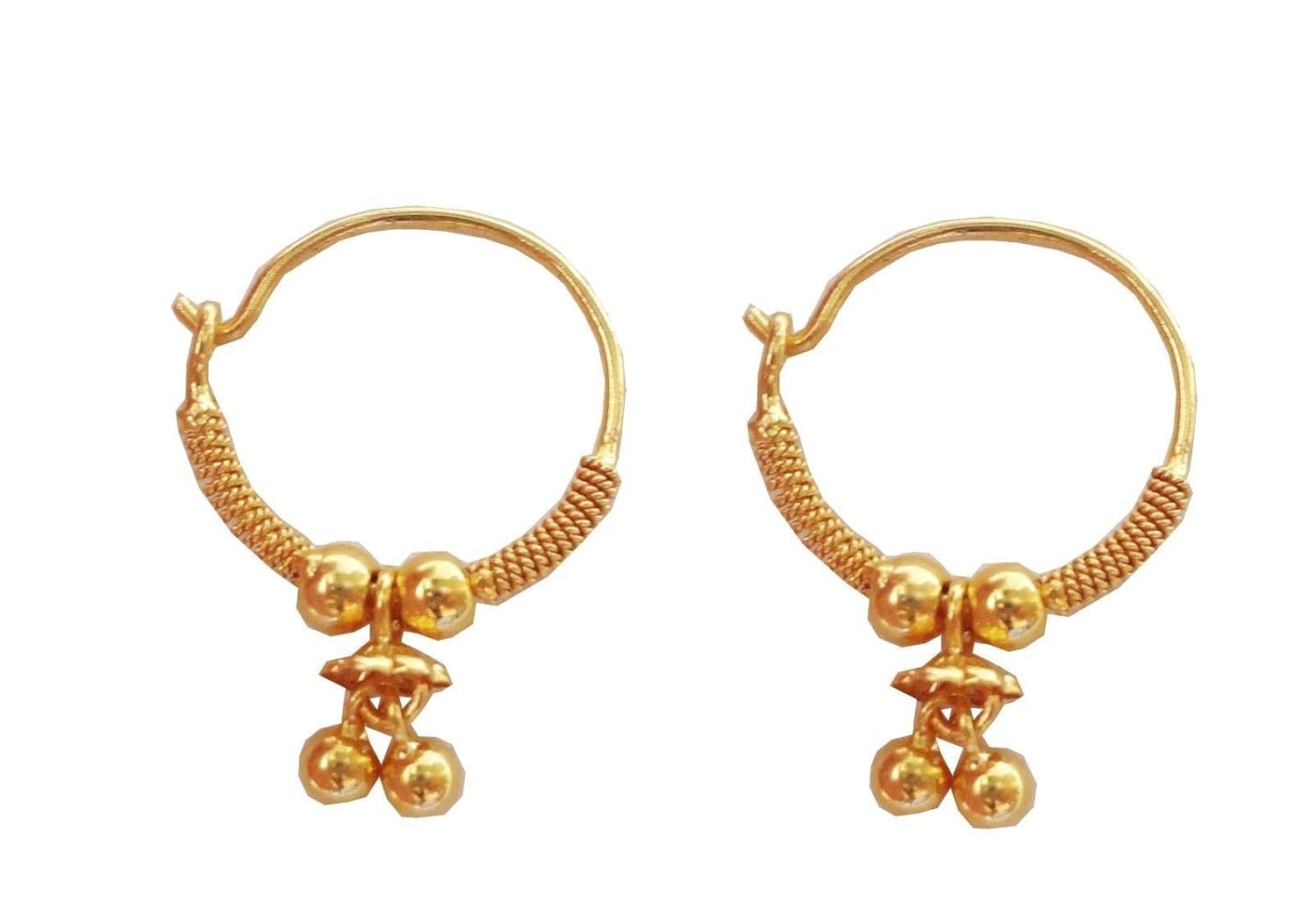 Beautiful Solid Real Yellow Fine 100 Pure Gold Round Design Indian Handmade Hoop Earrings
