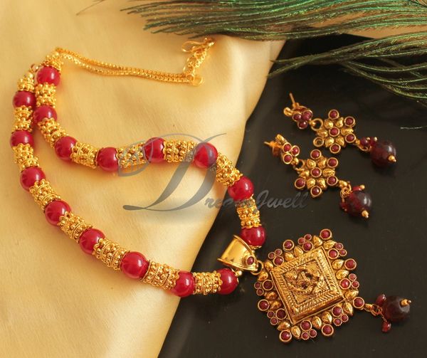 Beautiful Antique Red Beads Lakshmi Designer Necklace Set Dj25256