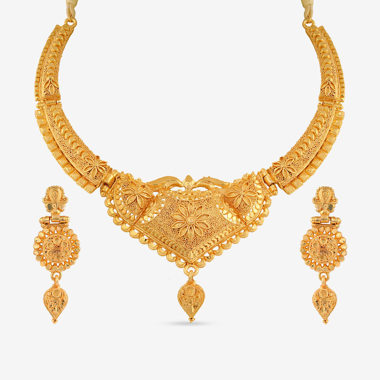 Details About Filigree Work Indian Bridal Design 22k Yellow Gold Wedding Necklace Tribal Set58