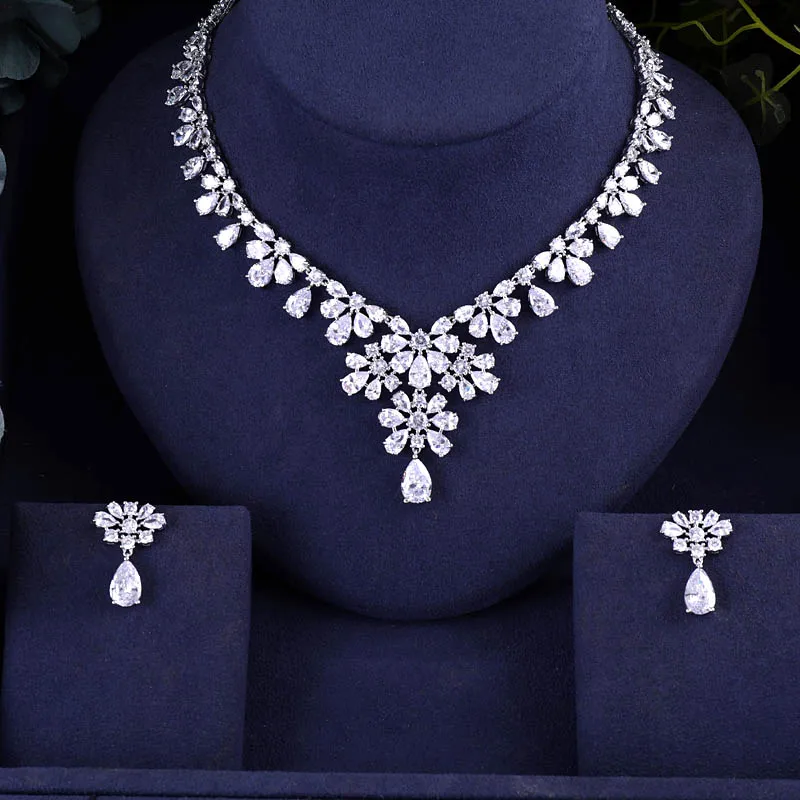 Crystal Women Wedding Jewelry Sets Golden Plated Flower Design Bridal Party Necklace Earrings Set