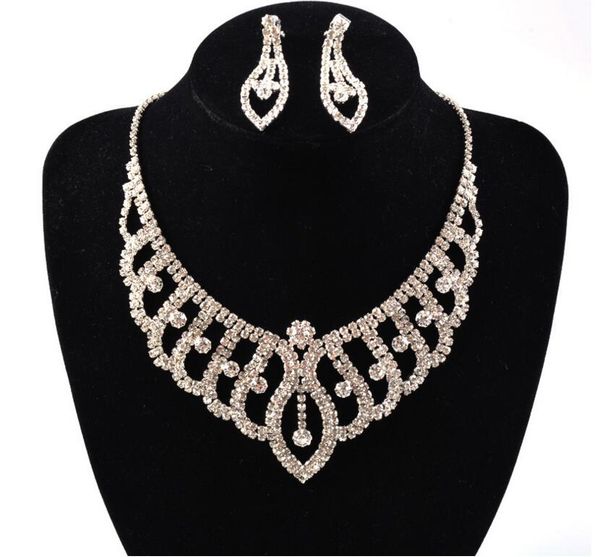 Simple New Wedding Jewelry Water Drop Crystal Collarbone Chain Necklace Set Bridal Jewelry Pearls Luxury Bracelets Necklace Earings Ld019 Dangle