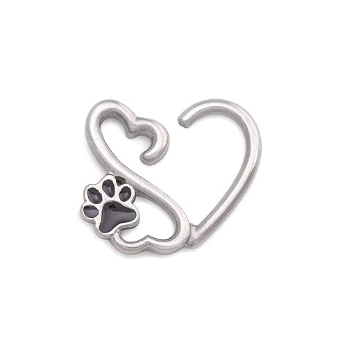 Painful Pleasures 16g Stainless Steel Bendable Heart Shaped Ear Jewelry Ornate Dual Heart Design With Black Epoxy Paw Print