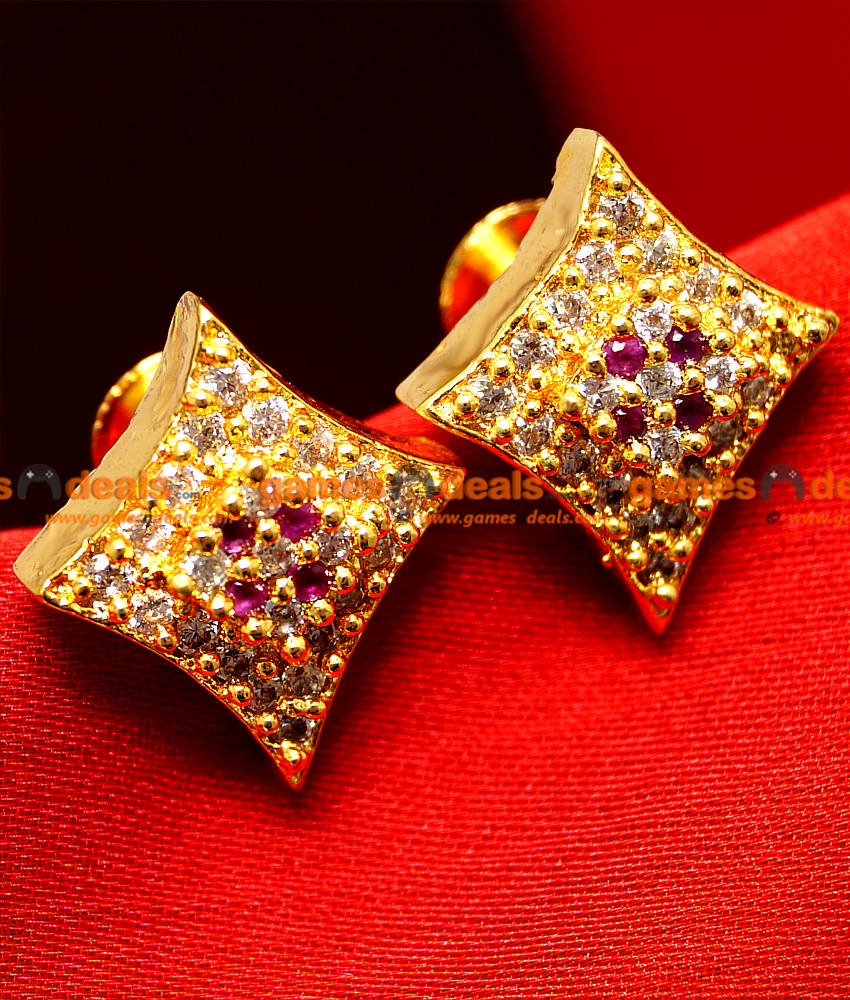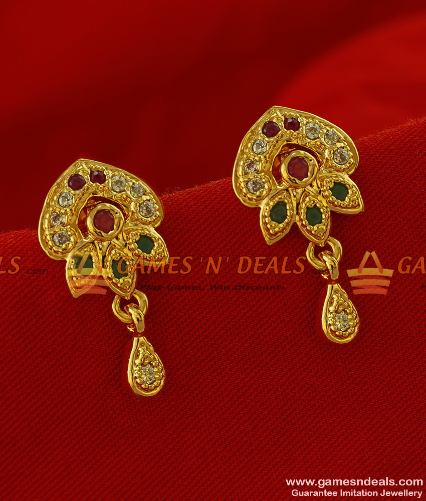 Er001 Gold Plated Ear Rings Semi Precious Ad Stone Party Wear Design