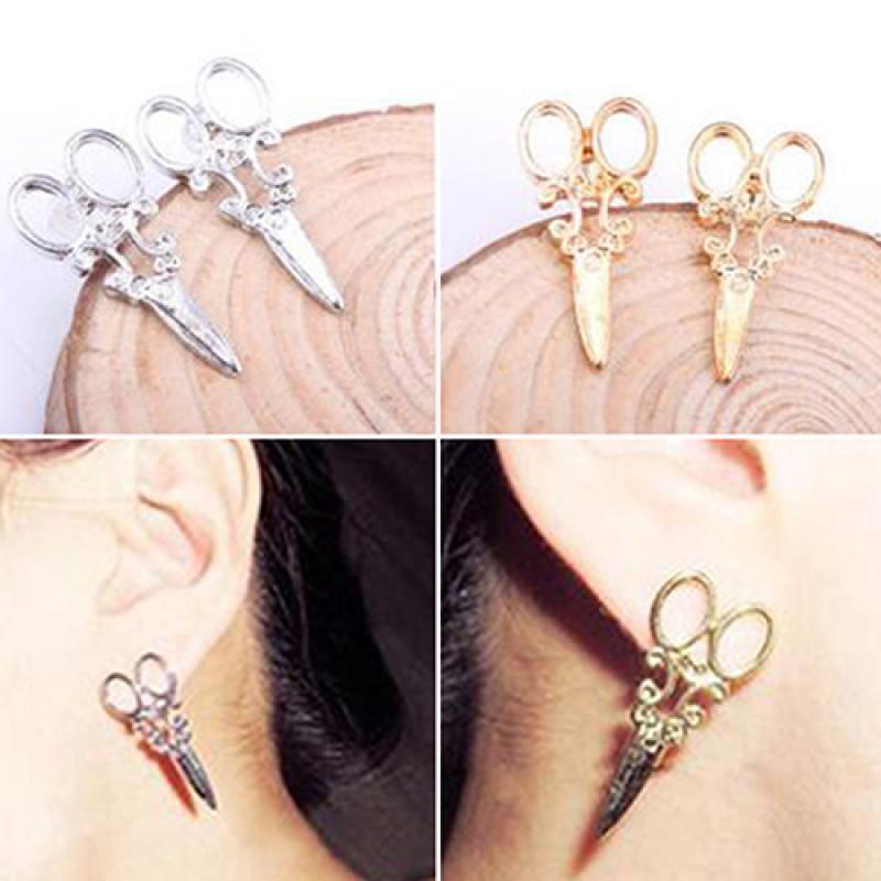 Bluelans Women S Girl S Punk Scissors Shape Design Ear Studs Creative Earrings Jewelry Silver