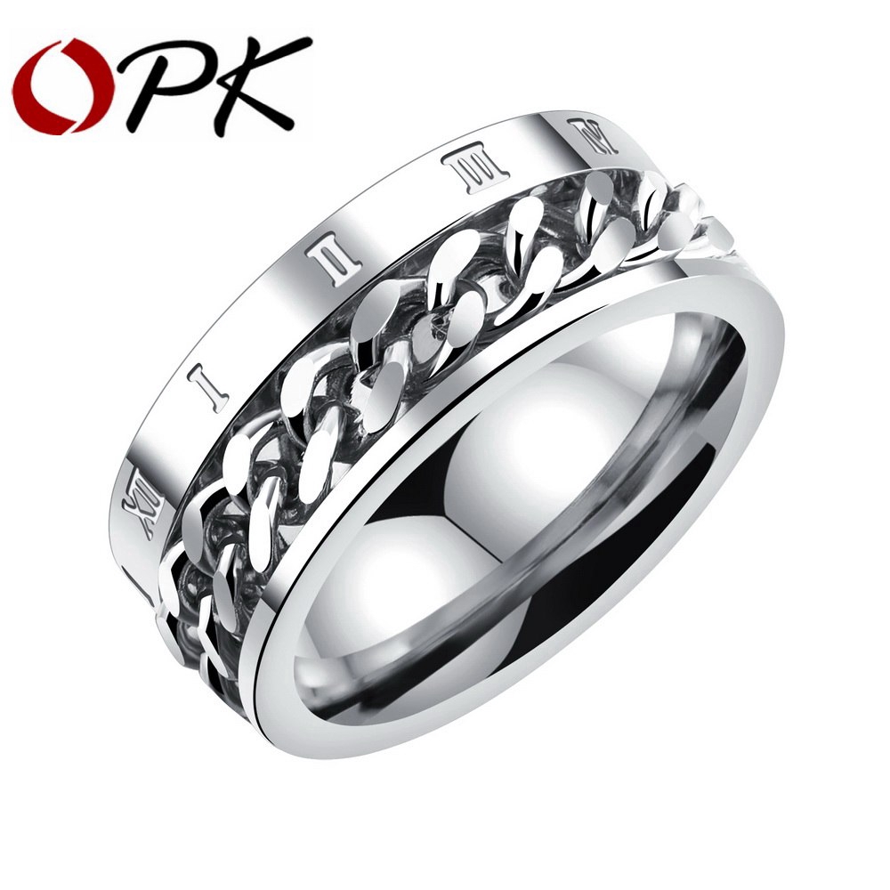 Opk Unique Chain Spinner Rings For Men Roman Numerals Design Boy Male Jewelry