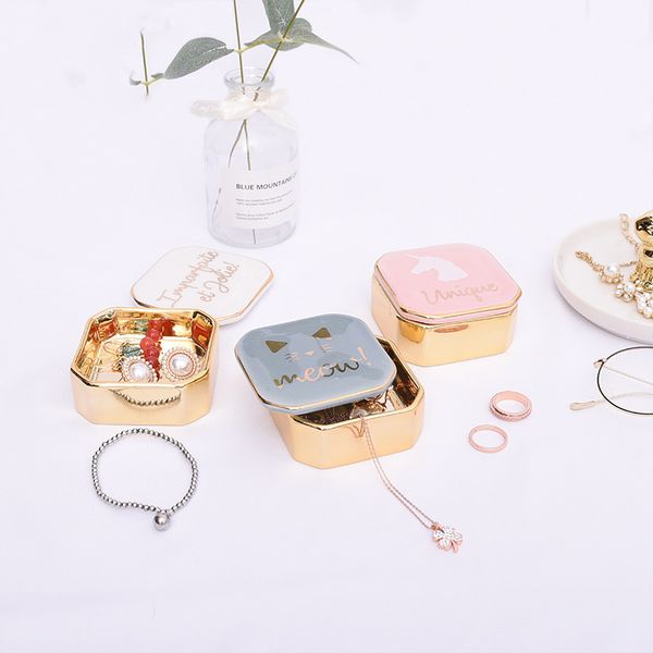 2019 Ddisplayporcelain Pink Unicorn Glamour Jewelry Box Personalized Grey Cat Bracelet Storage Organizer White Words Earrings Display Case From