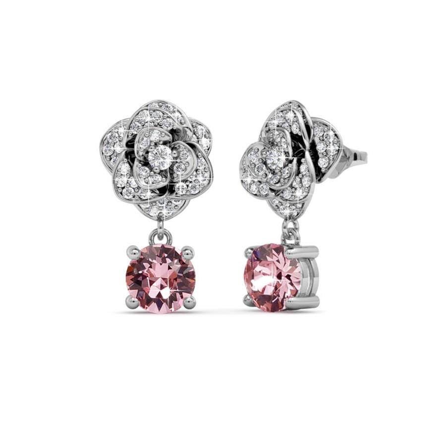 Her Jewellery Glamour Rose Earrings Embellished With Crystals From Swarovski