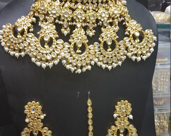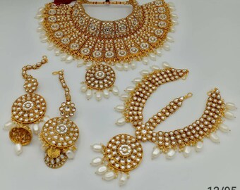 Latest Indian Bollywood Pearl Golden Kundan Cz Full Bridal Jewelry Set