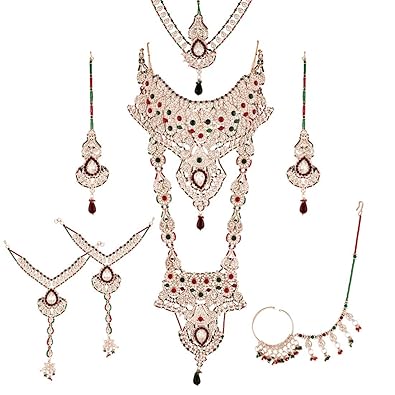 Sathiya Jewellers Red Gold Plated Complete Multicolour Bridal Jewellery Set For Women