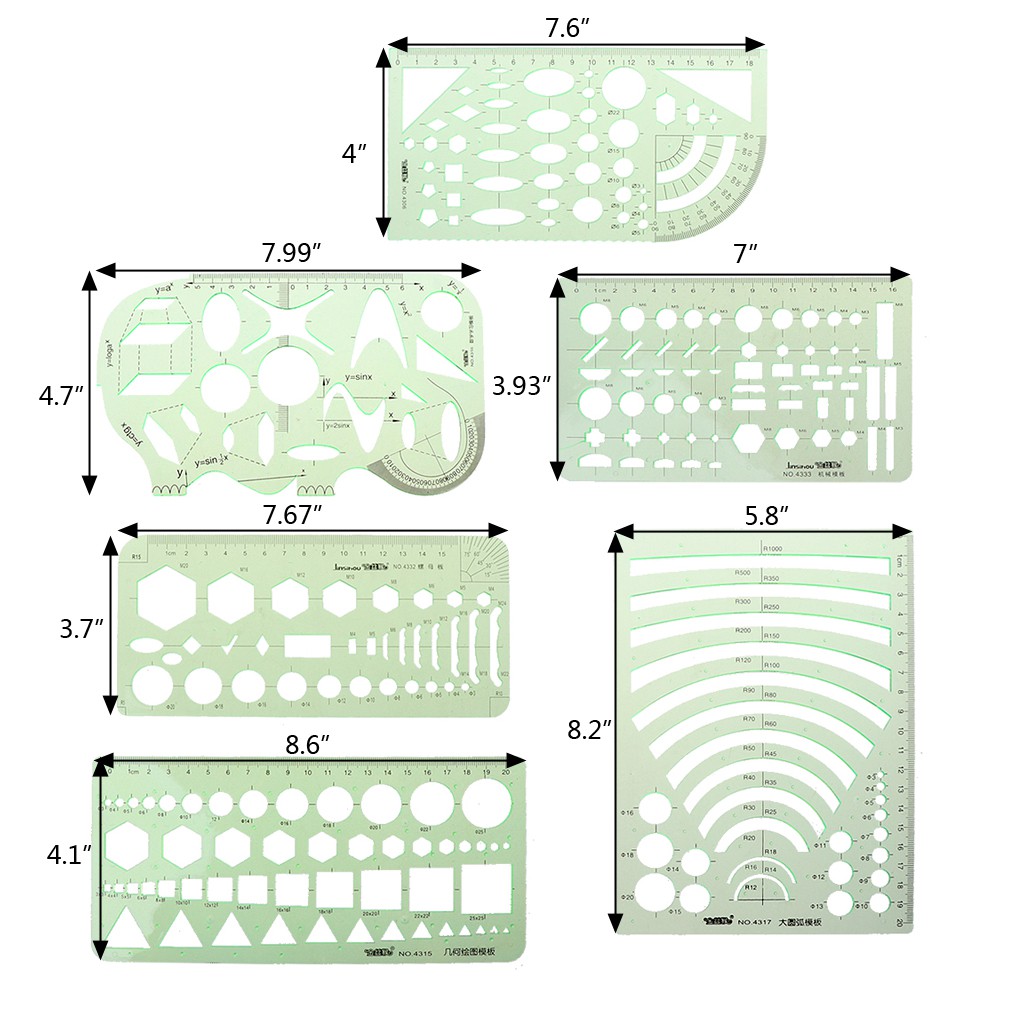 Hot Discount 3f530 6pcs Drawing Templates Measuring