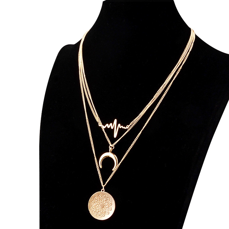 Multilayered Moon Flower Heart Beat Pendant Necklaces Women Girl Fashion Neck Jewellery