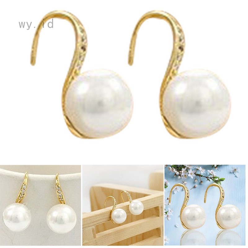 New Design Simple Simulated Pearl Ear Jewelry Gold Color Drop Earrings