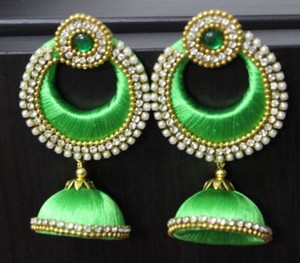Nisuj Fashion Handmade Silk Thread Green Stone Earrings New Design Jhumka
