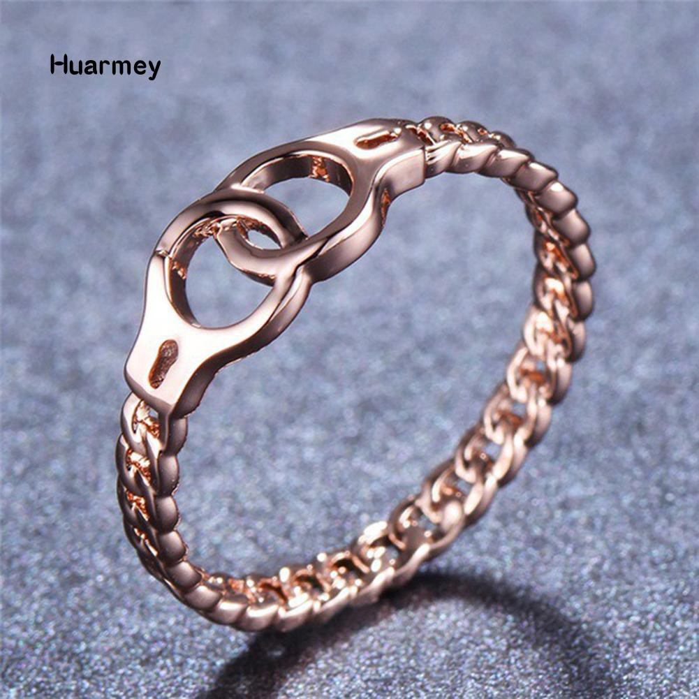 Hu Rose Gold Plated Buckles Handcuff Ring Women Finger Charm Jewelry Decor