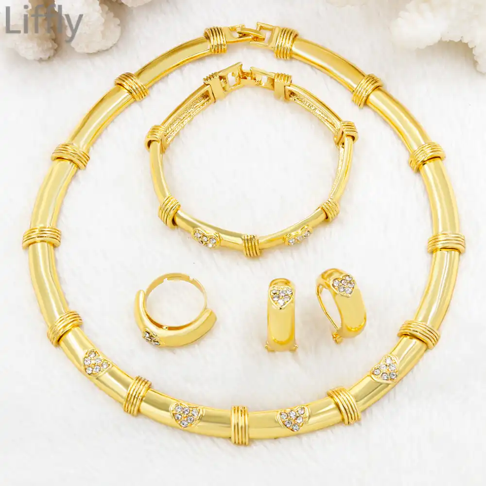 Liffly Birthday Party Simple Fashion Design Gold Jewelry Sets Italian Charm Women Crystal Necklace Bracelet Ring Accessories