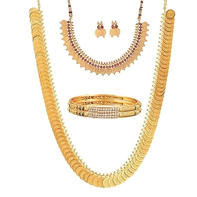 Youbella Jewellery Bollywood Ethnic Gold Plated Traditional Indian Combo Of Necklace Jewellery Set With Bangles And Earrings For Women