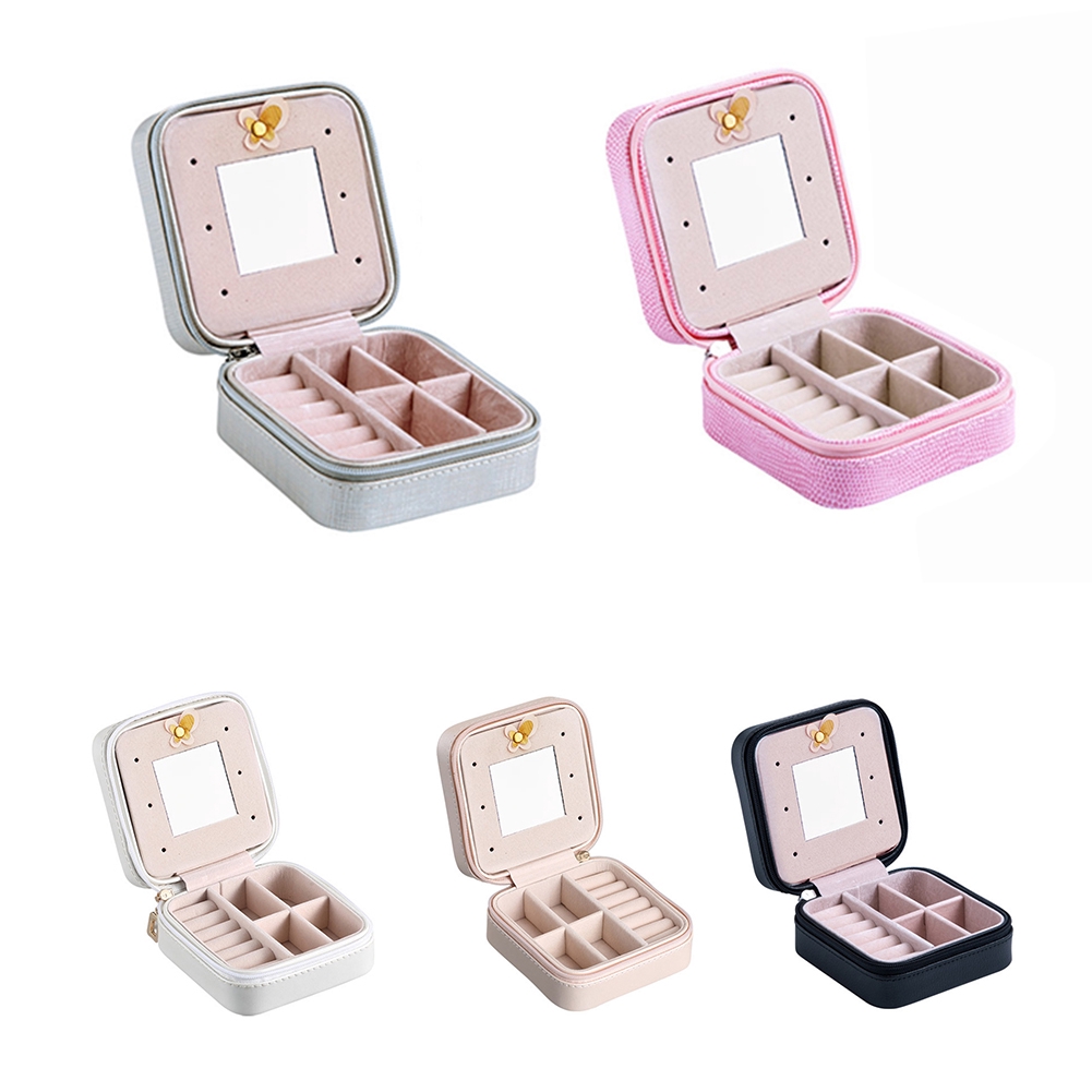 2019 Korean Style Fresh And Simple Girl Earrings Plate Jewelry Box Protable Leather Earrings Ring Multi Function Jewelry Storage Box From