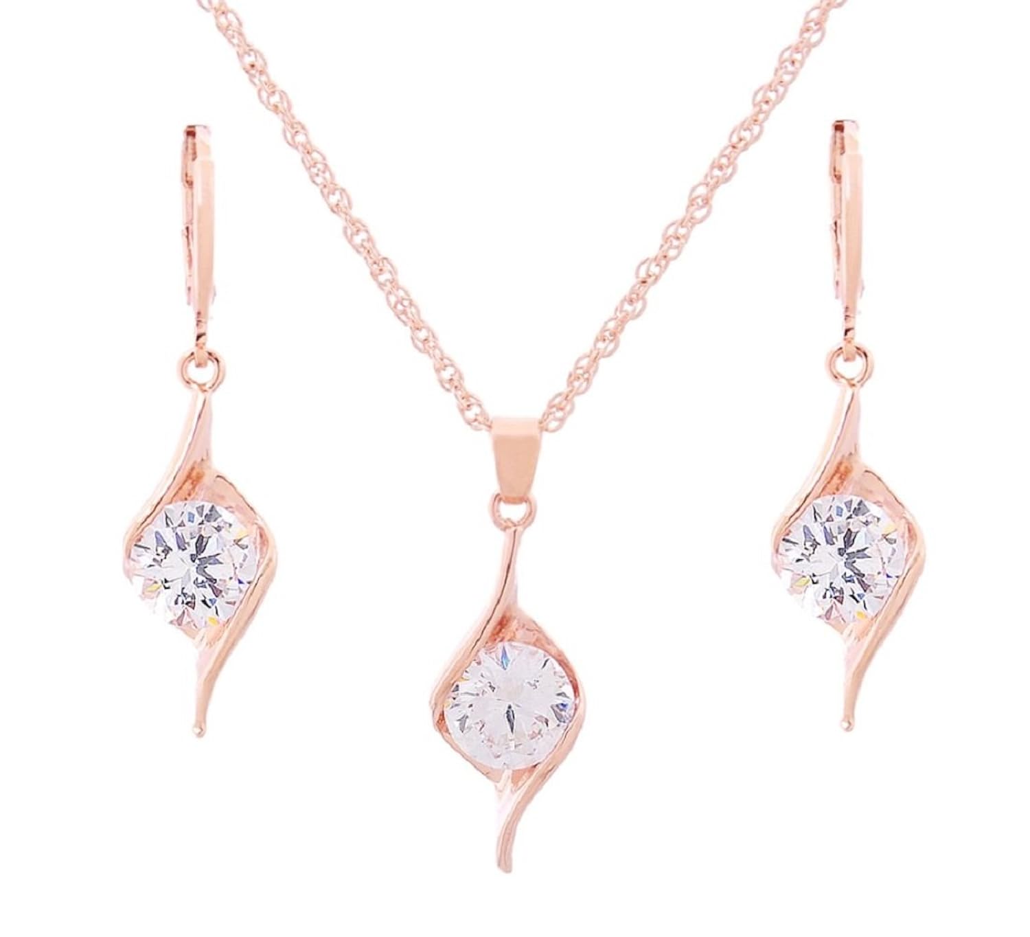 Simple Design Rose Gold Plated Woman Rhinestone Jewelry Set In Zinc Alloy Jewelry Set