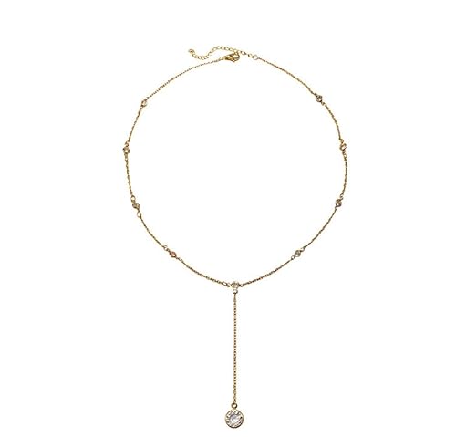 Single Rhinestone Necklace Simple Design Brass Chain Pendant Women Neck Jewelry Accessories