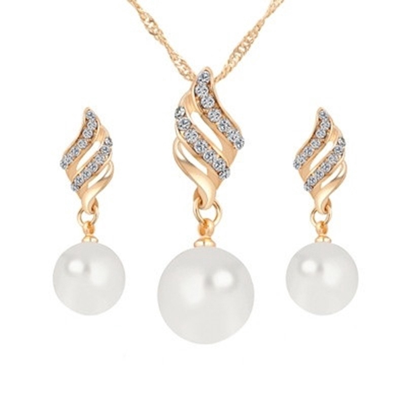 Bridal Jewelry Sets Simulated Pearl Necklace Rhinestones Chamrs Earrings Set Spiral Jewelery Set