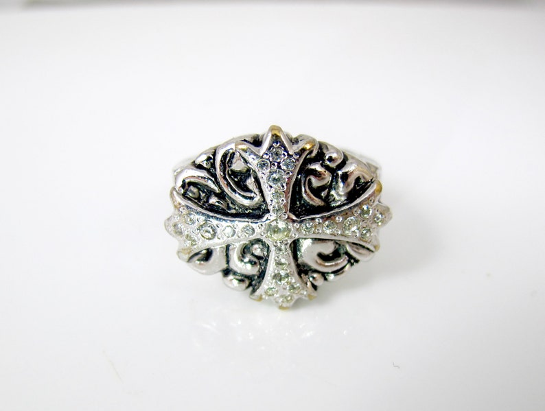 Gianni Versace Sterling Ring Gothic Cross Sterling Silver Cz Greek Key Statement Ring 1980 S Versace Jewelry