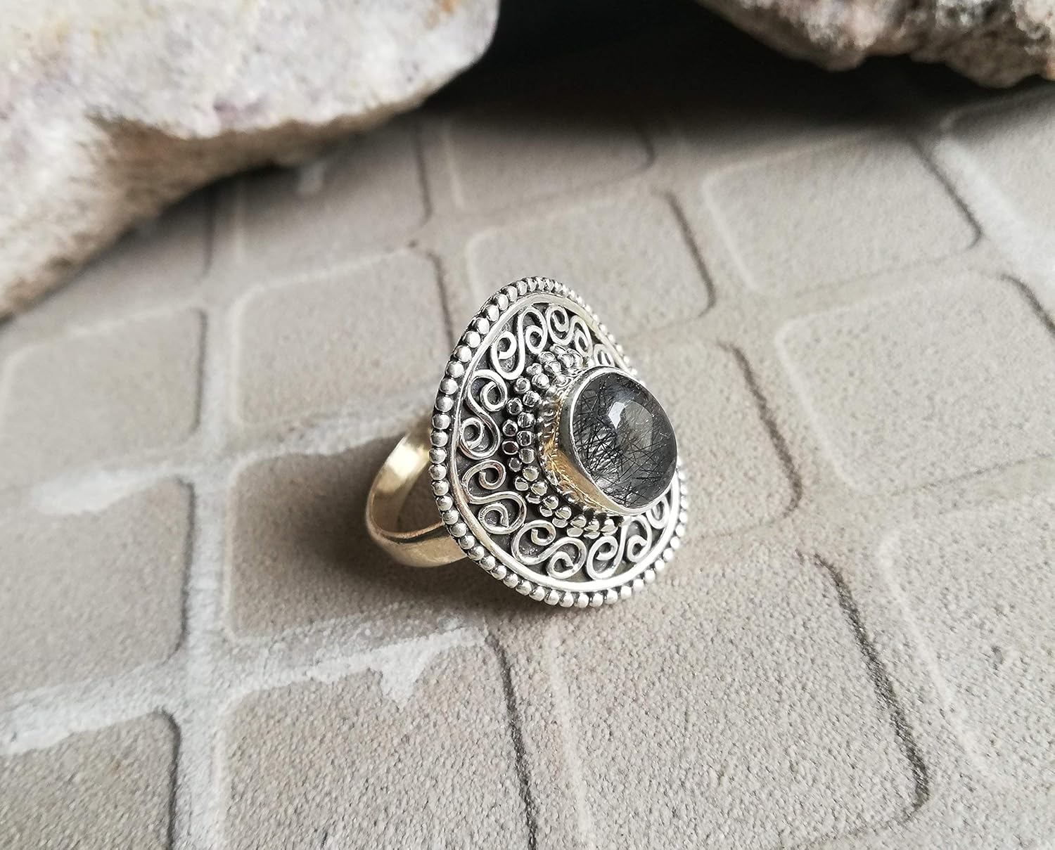 Amazon Com Black Rutile Ring Victorian Jewellery Design