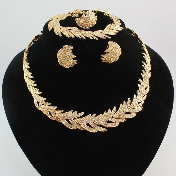 New Design Crystal Vintage Costume Dubai African Gold Plated Fashion Rhinestone Wedding Bridal Accessories Jewelry Sets Jewellery Stores Engagement