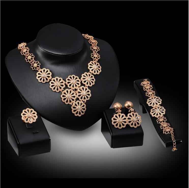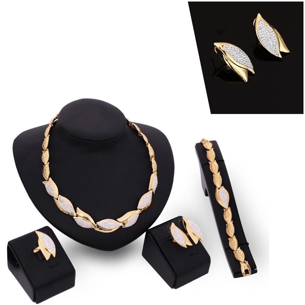 Gold Plated Jewelry Sets Necklace Earrings Bracelet Ring Wedding Crystal Bridal Jewellery Sets