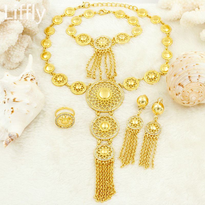 Liffly Women Dubai Jewelry Sets Luxury Bridal Nigerian Wedding African Beads Jewelry Set Costume New Design